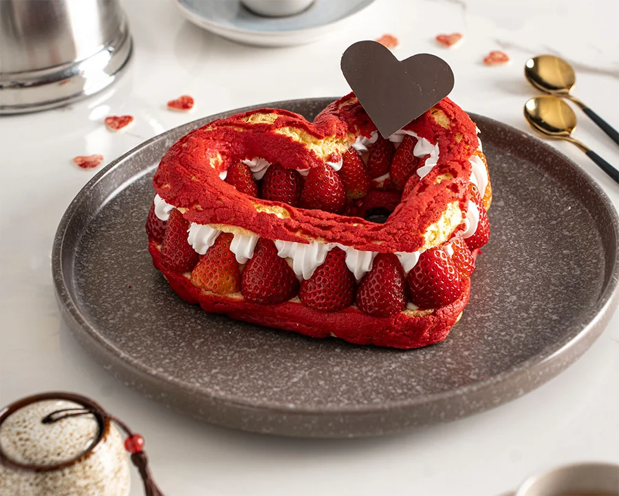 - Colocar media frutilla al filo del corazón para mantener la figura.